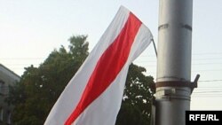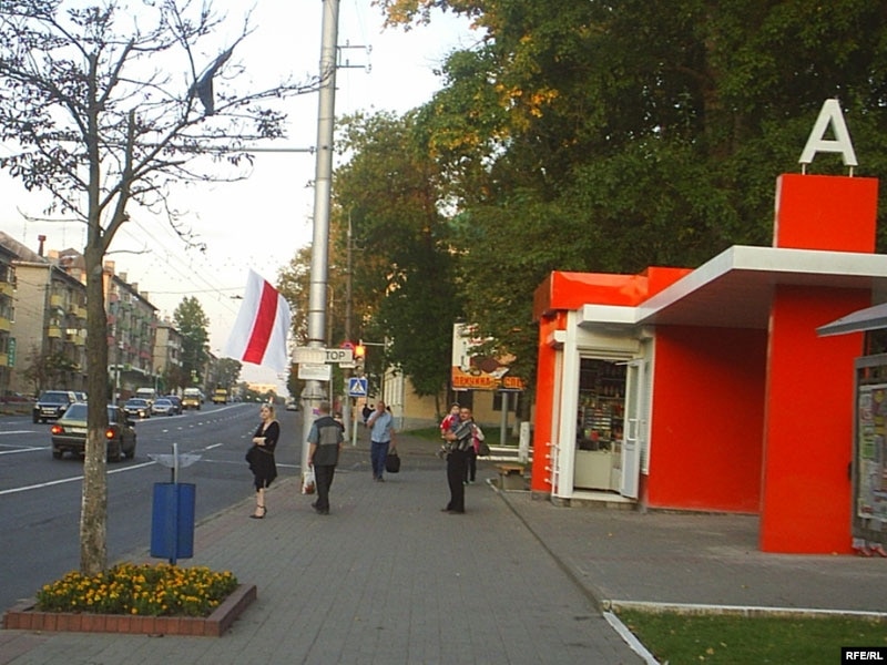 Сьцяг на транспартным прыпынку каля мэдычнага ўнівэрсытэту зьявіўся каля паловы на восьмую вечара і правісеў усяго некалькі хвілін – яго зьнялі людзі ў цывільным.
