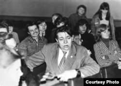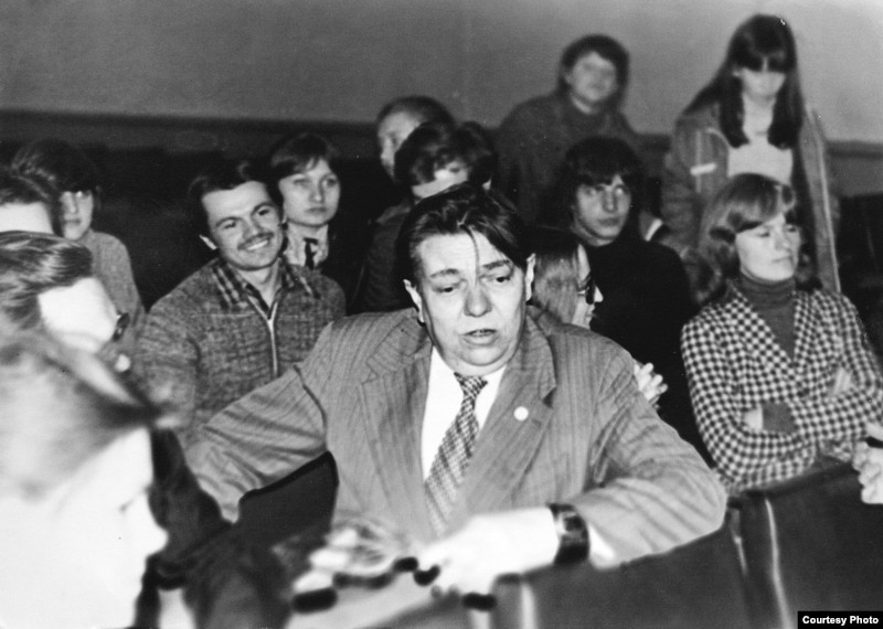 Сустрэча Майстроўні з Уладзімерам Караткевічам на філфаку БДУ пасьля прагляду спэктакля “Цар Максімілян”, 1981 год.