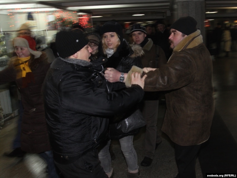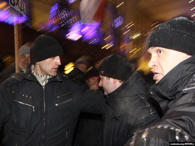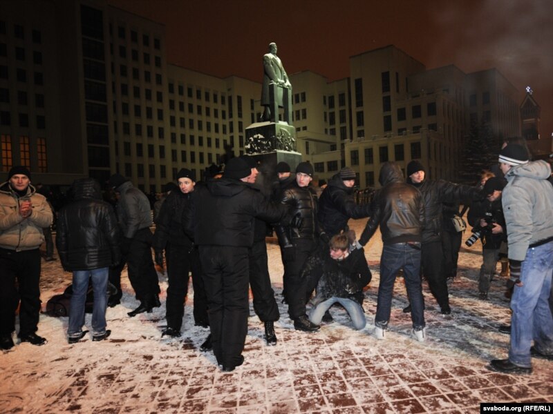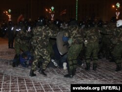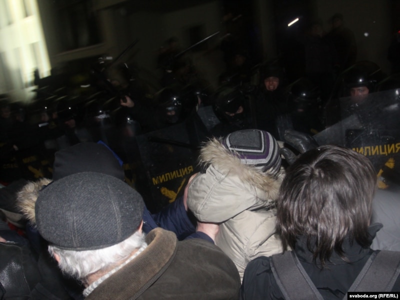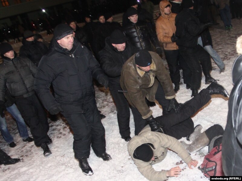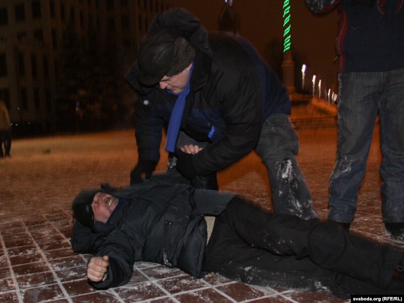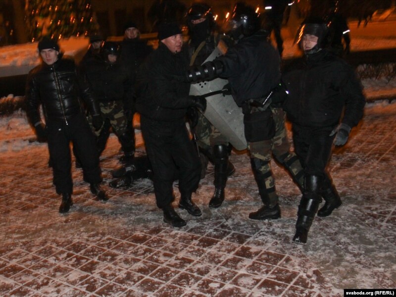 01.10 Міліцыянты зьбілі карэспандэнта Радыё Свабода Алега Грузьдзіловіча. Калі ён здымаў зьбіцьцё маладога хлопца на яго напалі ззаду, пачалі біць нагамі. Паламалі відэакамэру. Пасьля таго, як ён пачаў крычаць, што ён журналіст, яго кінулі, пабеглі біць іншых. Людзей дзясяткамі цягнулі ў аўтазакі.