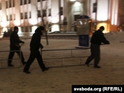 Плошча Незалежнасьці апусьцела, апроч спэцназаўцаў, нікога не засталося. Журналісты спрабуюць выйсьці з ачапленьня.