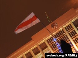 21.17 З будынка КДБ дэманстранты сарвалі чырвона-зялёныя сьцягі і ўставілі на іх месца бел-чырвона-белыя.