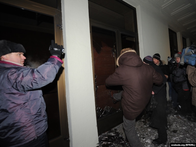 21.52 Перадае Галіна Абакунчык: "На прыступках дому ўраду адбываліся незразумелыя рэчы. Людзі пачалі рухацца да ўваходу. Кандыдаты гэтым працэсам не кіравалі. Людзі грукаліся ў дзьверы. Раптам маладыя людзі і пачалі разьбіваць дзьверы на ўсім працягу уваходу. За кожнымі дзьвярыма былі барыкады. Яны былі гатовыя. Як толькі дзьверы былі разьбітыя, адразу выскачылі супрацоўнікі АМОНу. Было некалькі жорсткіх сутычак.