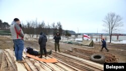 На пытаньне карэспандэнткі Свабоды адзін з рабочых патлумачыў, навошта будуюць дадатковую агароджу:
