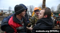 — Ты пакажы мне, якія крыжы тут? Ну якія крыжы? Сам ня ведаеш, за што змагаесься! — крычыць рабочы і хапае Дашкевіча за каўнер.