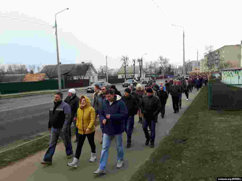 Калёна ў паўтары сотні чалавек рушыла па ходніках у цэнтар гораду, дзе сабралася прыкладна столькі ж іншых пратэстоўцаў.