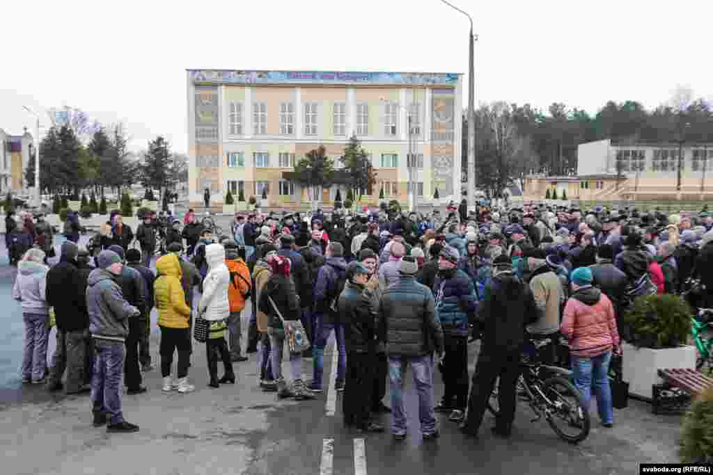 Каля трохсот жыхароў Рагачову сабраліся 12 сакавіка на галоўнай плошчы гораду каля райвыканкаму, каб выказаць сваё рашучае непрыняцьце дэкрэту №3.