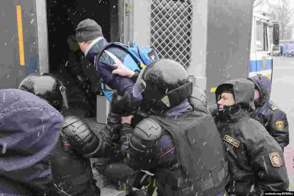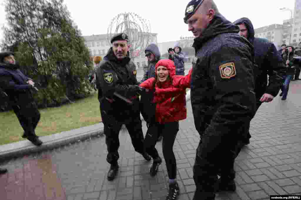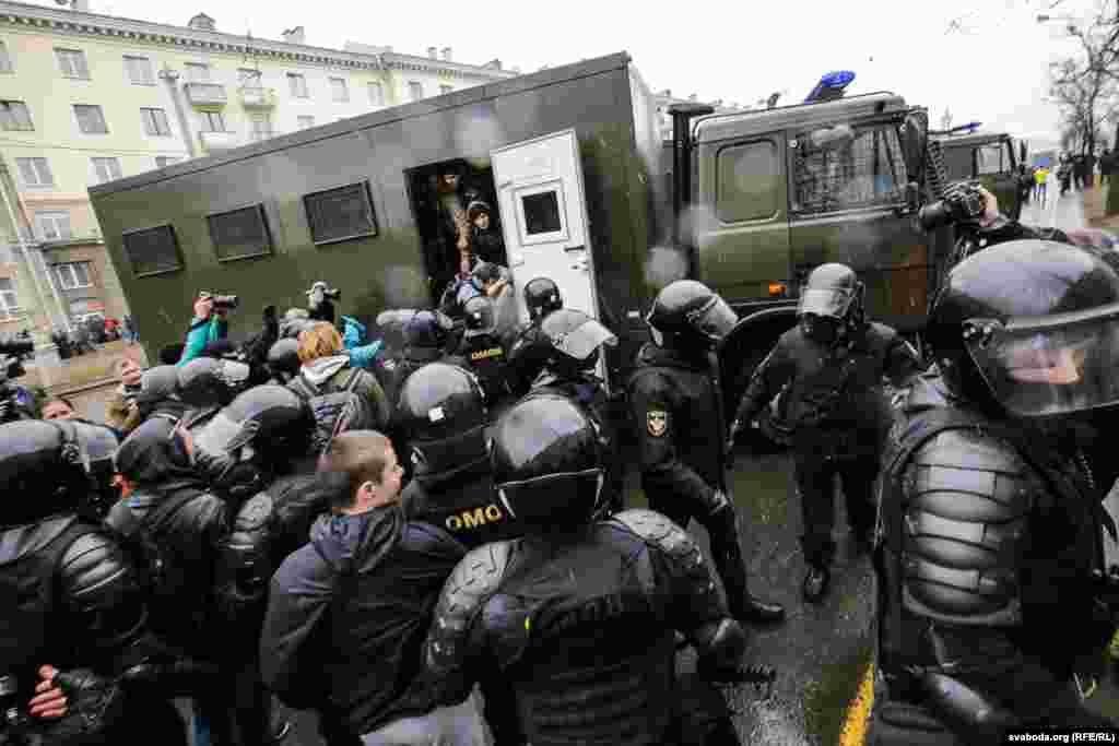 ў гонар 99-й гадавіны абвяшчэньня незалежнасьці Беларускай Народнай Рэспублікі. За час акцыі затрыманыя сотні чалавек, дзясяткі журналістаў.