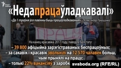 — На канец красавіка ў Беларусі было 39,8 тысячы афіцыйна зарэгістраваных беспрацоўных. Фактычнае беспрацоўе значна большае: за 2016 год беспрацоўнымі сябе назвалі 5,8% ад эканамічна актыўнага насельніцтва, а гэта каля 260 тысяч чалавек. Больш сьвежых зьвестак аб фактычным беспрацоўі няма, ды й у 2016 годзе яны публікаваліся толькі чацьвёрты раз з 1991 году.