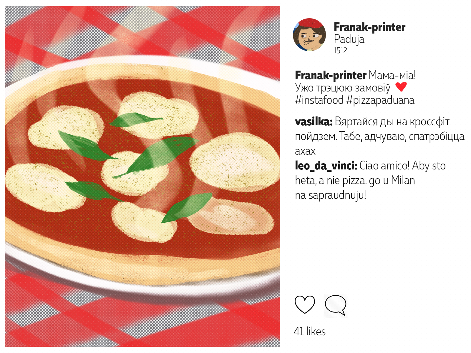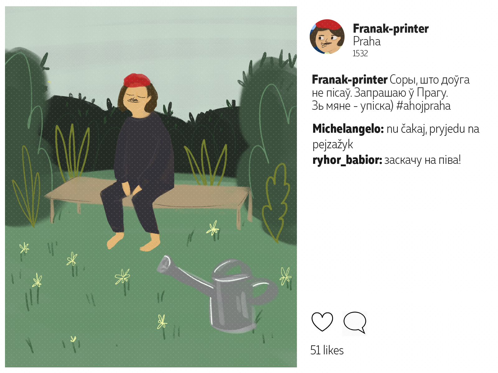 Францішак Скарына падарожнічаў ня менш за каторага сучаснага маладзёна. Ураджэнец Полацку, ён аб'ехаў палову Эўропы*: ад Вэнэцыі да Масквы. Пакінуў сьлед ва ўнівэрсытэтах Польшчы і Вэнэцыянскай рэспублікі, пры каралеўскіх дварах Даніі і Чэхіі. У Познані ён адседзеў у астрогу, а з Саксоніі ад яго ўцякаў Марцін Лютэр. Мы падумалі, што Скарына абавязкова карыстаўся б сацсеткамі. І вось як мог бы выглядаць ягоны інстаграм.