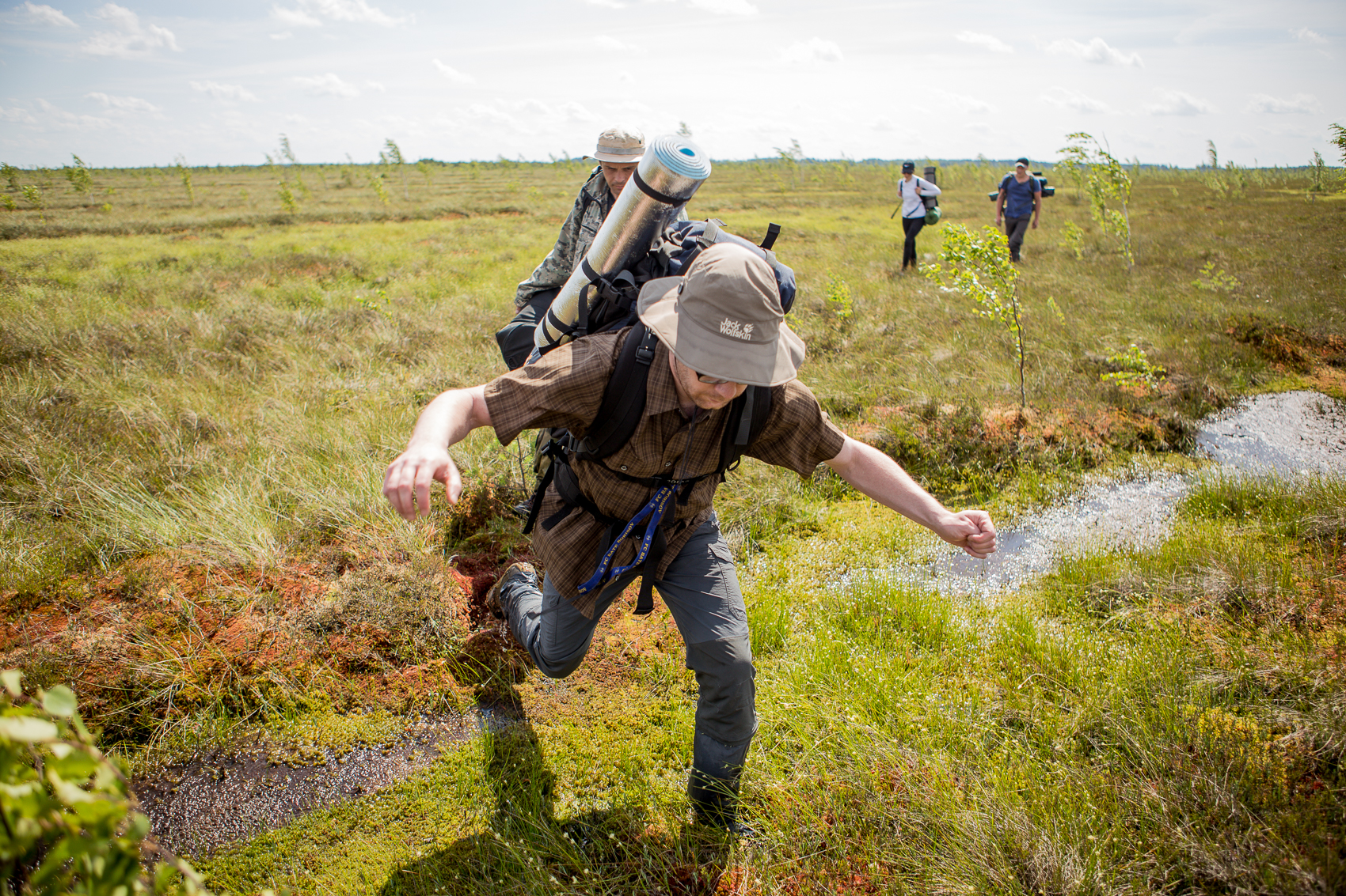 Гумовыя боты тут не дапамогуць. Дасьведчаныя людзі кажуць, што яны скрадуць траціну тваёй энэргіі. Выліваць зь іх ваду на кожным кроку ты ня будзеш. Падчас руху ня раяць нават размаўляць, бо з размовай сыходзяць сілы.