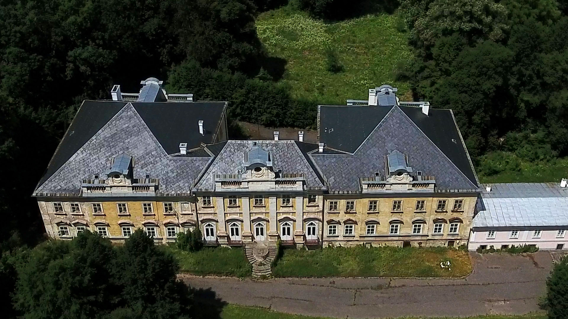 Маё самалюбства, як пакупніка, усьцешанае: я магу стаць уладальніцай колішняй прэзыдэнцкай рэзыдэнцыі. Праўда, тут за савецкім часам былі і казармы, і інтэрнат для рабочых уранавых руднікоў, і палітычная школа — сьляды гэтага будуць адчувацца яшчэ доўга. Пасьля 1989 замак вярнулі нашчадкам апошняга ўладальніка паводле рэстытуцыі, яны выставілі палац на продаж.