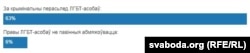 У той жа час адказы на пытаньне: «Наколькі прымальным асабіста для сябе Вы лічыце пражываньне па суседзтву з прадстаўнікамі сэксуальных меншасьцяў (ЛГБТ)?» не засьведчылі такую талерантнасьць у рэальнасьці.