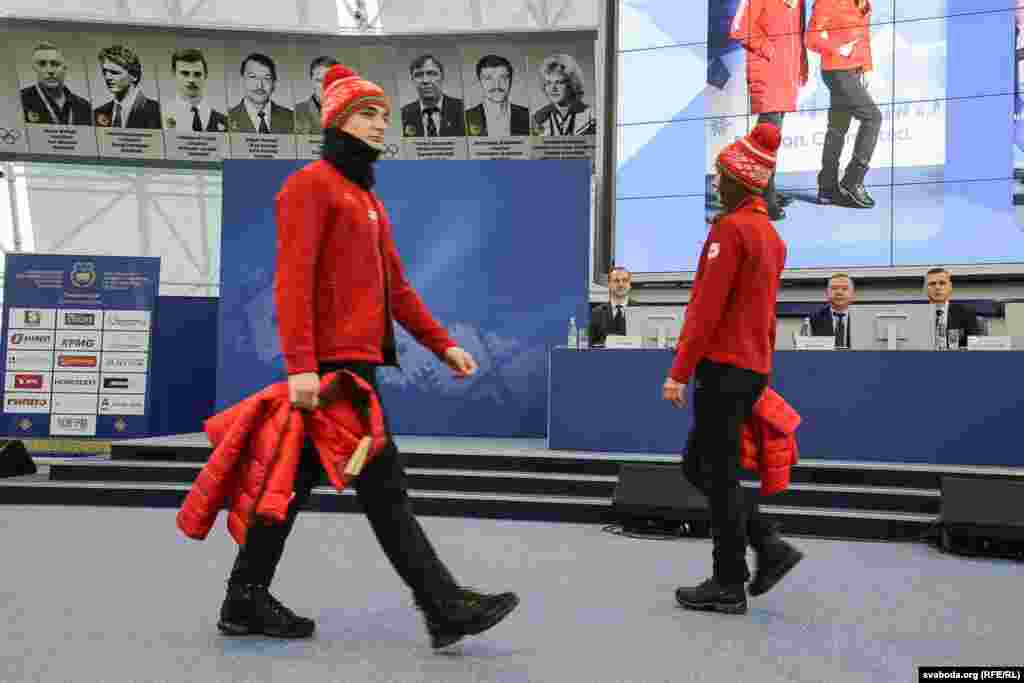 У штаб-кватэры Нацыянальнага алімпійскага камітэту Беларусі прэзэнтавалі камплекты парадных строяў і трэніровачнай амуніцыі, у якіх беларускія спартоўцы паедуць на зімовыя Гульні-2018.
