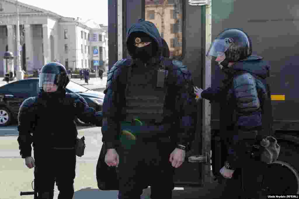 «Хапун» на плошчы Якуба Коласа ў Менску, адкуль Статкевіч зьбіраўся з шэсьцем. Фотагалерэя
