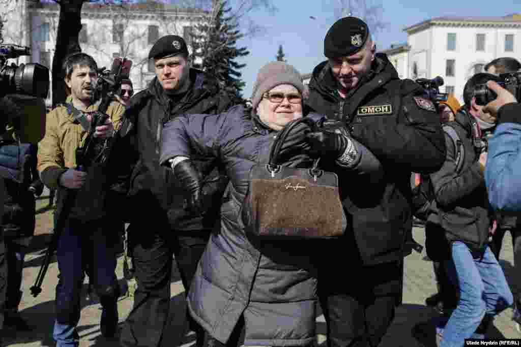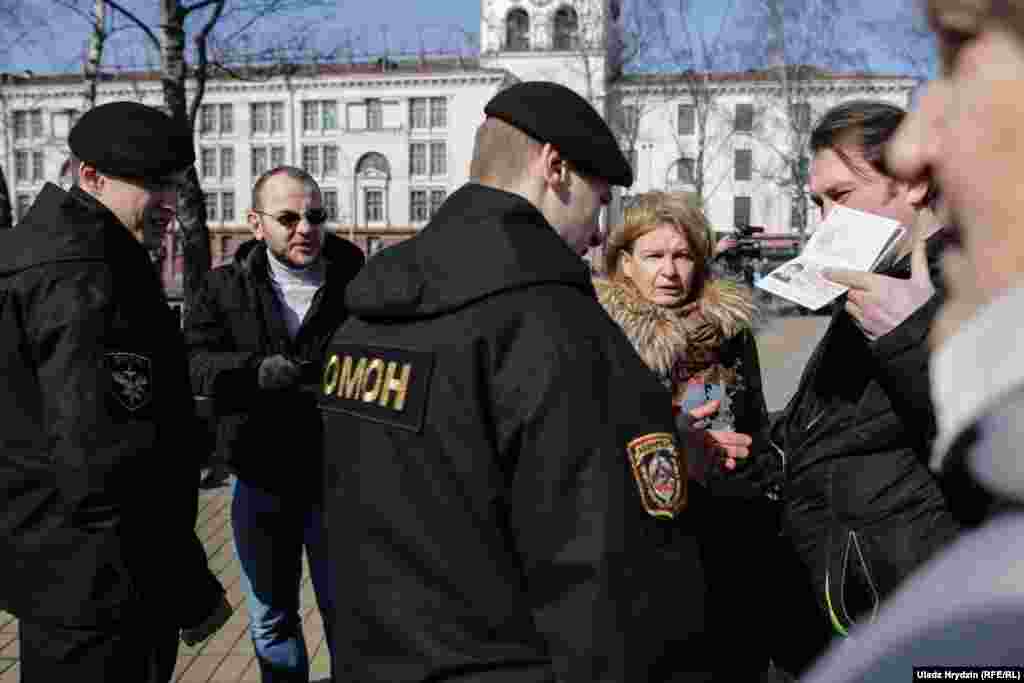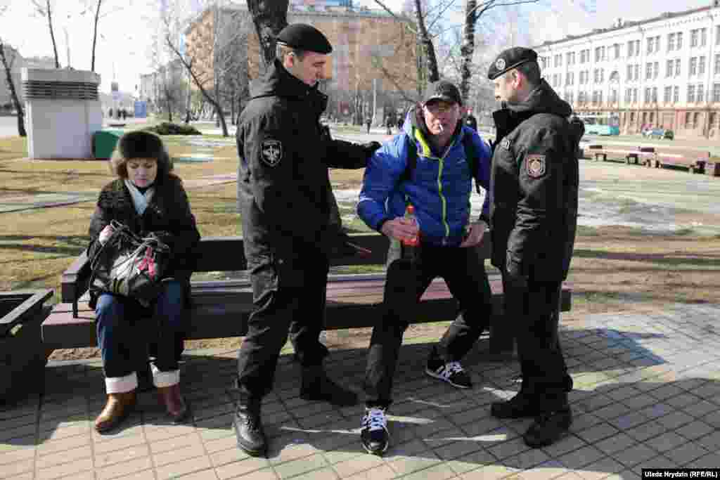 Як перадае карэспандэнт Свабоды, спачатку затрымлівалі ўсіх, хто меў пры сабе бел-чырвона-белыя сьцягі, кветкі, — «для высьвятленьня асобы». Потым пачалі затрымліваць усіх, хто знаходзіўся на плошчы. Падчас затрыманьняў прадстаўнік міліцыі настойліва папрасіў журналістаў не «перашкаджаць працаваць супрацоўнікам міліцыі».
