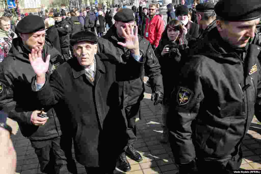 Як паведаміла сустаршыня руху салідарнасьці «Разам» Алена Талстая, затрыманых на плошчы Якуба Коласа ў аўтазаках адвезьлі ў Савецкі РУУС Менска.