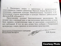 Чыноўнікі, якіх у 2012 годзе Генэральная пракуратура прапаноўвала прыцягнуць да дысцыплінарнай адказнасьці за парушэньні пры будаўніцтве забаўляльнага комплексу.