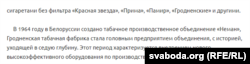Чытач Свабоды зьвярнуў увагу на тое, што на сайце горадзенскай тытунёвай фабрыкі «Нёман» назва краіны ў расейскамоўным варыянце ў некаторых выпадках пішацца як Белоруссия. Пры гэтым беларускай вэрсіі старонкі не існуе ўвогуле, толькі расейская і ангельская.