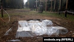 На «Галгофе» сабралі фундамэнт для афіцыйнага мэмарыяльнага знаку, цяпер ён закрыты плёнкай.
