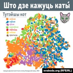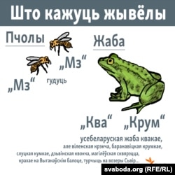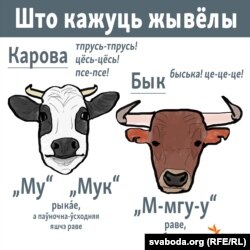 Карцінкі ніжэй — вынік вуснага апытаньня. Але не жывёлаў, а людзей. І не карэспандэнтамі Свабоды, а шматлікімі навукоўцамі, якія хадзілі па вёсках і мястэчках Беларусі. Вынікі апытаньняў тых навукоўцаў сабраныя ў кнігах — у Дыялекталягічным атлясе беларускай мовы (1963 год), у пазьнейшых Лексычным атлясе і слоўніках. Нядаўна Свабода публікавала „Моўныя мапы“ пра Каляды.