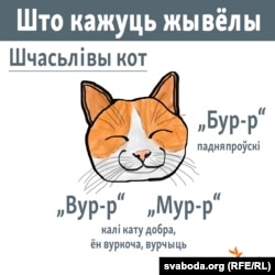 А калі кот шчасьлівы, дык ён вуркоча, або вурчыць, або муркае. Пра гэта кажуць яшчэ курняўкае, курню пяе (на паўночным захадзе скажуць, што і ўсхваляванае мяўканьне — гэта „курняў“). Каб выклікаць вуркатаньне, трэба ката накарміць і пагладзіць. Але будзьце пільнымі: бывае, каты вурчаць таксама тады, калі ім страшна ці балюча, — для аўтапсыхатэрапіі.