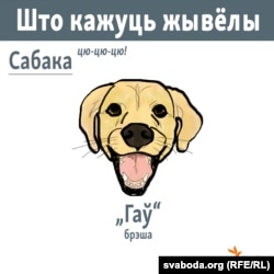 З сабакамі таксама ўсё проста толькі на першы погляд. „Гаў“ — гэта звычайны гук ад сабакі. Сабака брэша (таксама гэтак кажуць пра чалавека, які хлусіць). Падзываць сабаку найлепей па імені, але можна паспрабаваць і словамі „цю-цю-цю“.