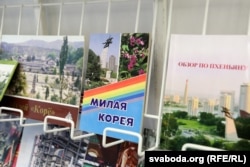 Стэнды ад амбасадаў Паўночнай і Паўднёвай Карэі на выставе разьмясьцілі адну насупраць адной. На стэндзе КНДР — біяграфіі Кім Ір Сэна, ідэі чучхэ. На прылаўку Рэспублікі Карэя — мастацкая літаратура і буклеты.
