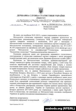 У Дзяржаўнай службе статыстыкі таксама падкрэсьлілі, што асноўнай крыніцай для правядзеньня статыстычных назіраньняў у замежным гандлі зьяўляюцца мытныя дэклярацыі, якія дае Дзяржаўная фіскальная служба Ўкраіны: