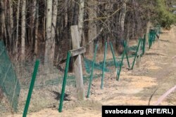 Побач з выкапанымі ямамі ўжо ляжаць зялёныя слупкі і панэлі сеткі. Будоўлю па-ранейшаму кантралююць міліцыянты ў форме і супрацоўнікі у цывільным.