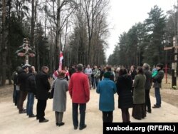 У нядзелю ўвечары каля 50 чалавек маліліся ў Курапатах. ФОТА