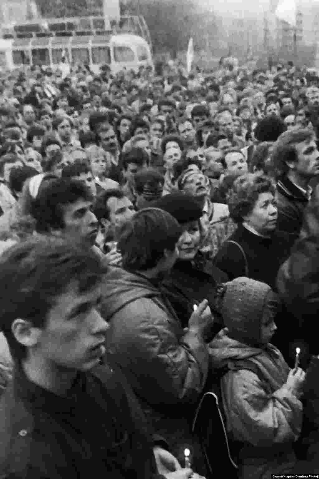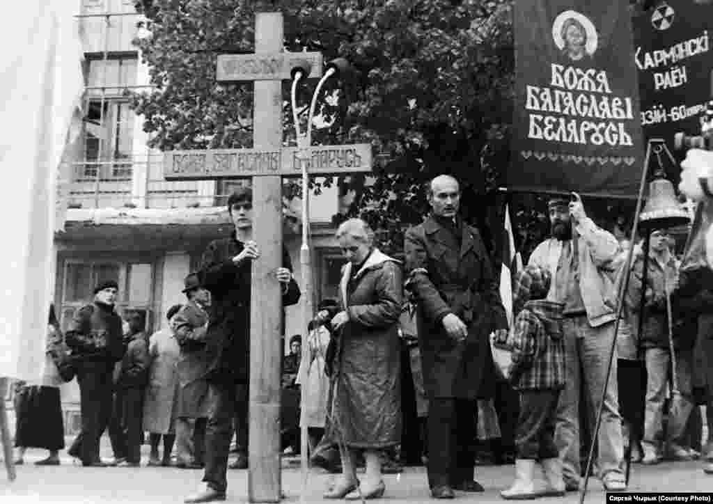 1990 год, яшчэ савецкая Беларусь, толькі другі па ліку «Чарнобыльскі шлях». Але стрымаць народны пратэст ужо немагчыма: дзясяткі тысяч людзей зьбіраюцца ў цэнтры Менску, над натоўпам ня толькі «чарнобыльскія», але і палітычныя лёзунгі. Прысутныя слухаюць Зянона Пазьняка.