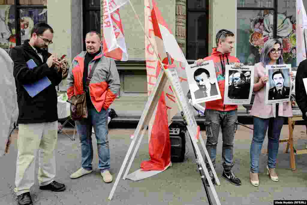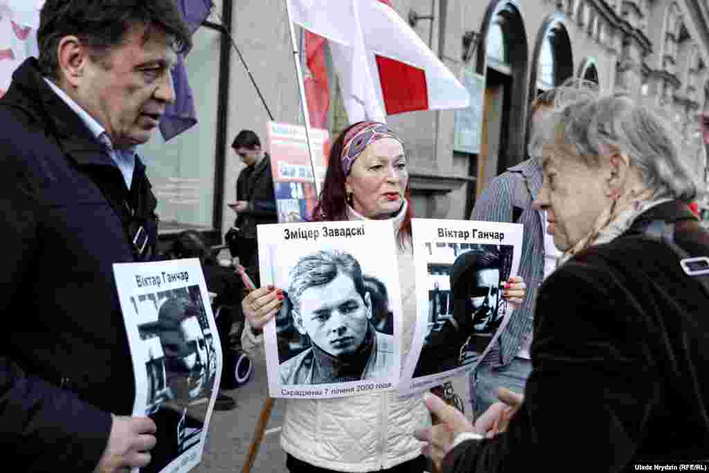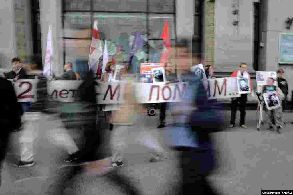 У цэнтар Менску выйшлі людзі з партрэтамі зьніклых палітыкаў. ФОТА
