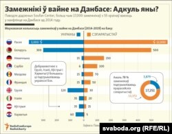 The Soufan Center падлічыў, колькі замежнікаў узялі ўдзел у збройным канфлікце ва Ўкраіне за 5 гадоў. Паводле гэтага некамэрцыйнага дасьледчага цэнтру, найбольш беларусаў ваявалі на баку сэпаратыстаў.