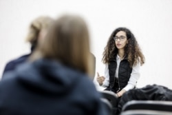 Маладыя людзі назваліся Русланам, Аленай і Сьвятланай. Яшчэ двое хлопцаў, Валер і Сяржук — сябры ініцыятыўнай групы кандыдаткі. У залі два журналісты. І дзьве сталыя жанчыны — прадстаўніца акруговай выбарчай камісіі і завуч школы № 67, якая дала актавую залю для сустрэчы.