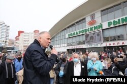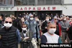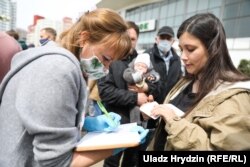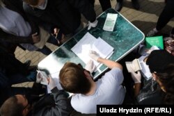 Паставіць свае подпісы за вылучэньне Сьвятланы Ціханоўскай і Ўладзімера Няпомняшчых прыйшлі сотні людзей, чарга ахвочых расьцягнулася ад уваходу на рынак да мэтро ля плошчы Якуба Коласа, гэта некалькі соцень мэтраў. Прапануем вам наш фотарэпартаж адтуль.