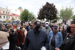 «Дзякуй, што ёсьць такія людзі як вы Сяргей і Сьцяпан (маецца на ўвазе Сьцяпан Пуціла, стваральнік праекту Nexta, — РС)», — кажа Ціханоўскаму мужчына з натоўпу.