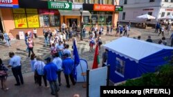 Невялікія групкі людзей, якія чакалі пачатку, нібы па нябачным знаку моўчкі сталі ў чэргі да столікаў па 10-15 чалавек.