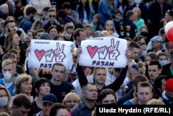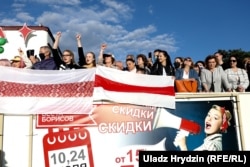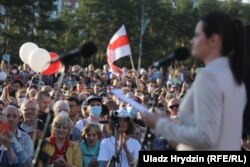 Перадвыбарчы мітынг кандыдаткі на прэзыдэнта Сьвятланы Ціханоўскай прайшоў у Барысаве на пляцоўцы каля ўнівэрмагу «Веста-Барысаў».