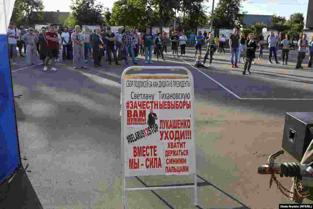 24 ліпеня мясцовыя актывісты зладзілі ў Стоўпцах першы супольны пікет. На яго прыйшлі Сьвятланы Ціханоўскай, Віктара Бабарыкі, Сяргея Чэрачня і Андрэя Дзьмітрыева. На пікет прыехаў і кандыдат у прэзыдэнты Андрэй Дзьмітрыеў.