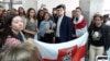 Студэнтак затрымлівалі мужчына ў белым гарнітуры і двое ў чорным