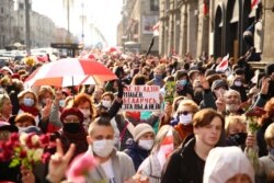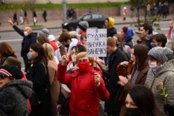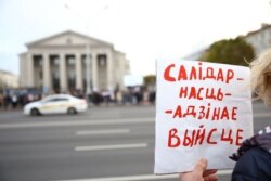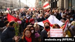 А 14-й гадзіне каля Чырвонага касьцёла на плошчы Незалежнасьці пачалі зьбірацца на традыцыйны панядзелкавы марш пэнсіянэры. Сёньня да іх вырашылі далучыцца і студэнты. Хутка калёна рушыла па праспэкце Незалежнасьці.