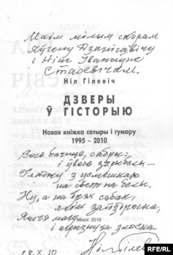 Паводле Яўгена Стасевіча: «Характэрнай асаблівасьцю Ніла Гілевіча зьяўляецца тое, што ён вельмі сур’ёзна ставіцца да аўтографаў на кнігах. Вось паглядзіце, што ён напісаў мне на кнізе „Родныя дзеці“: „Яўгену Дзянісавічу і Ніне Іванаўне Стасевічам. Прыміце, сябры дарагія, / Эпічную споведзь маю, / Ёсьць мова — народ не загіне, / На гэтым стаяў і стаю. / І праўды вышэйшай, чым гэта, / Няма на зямлі для паэта“. Ніл Гілевіч — майстар аўтографаў. Кожны з ягоных аўтографаў — гэта міні-твор, закончаная думка».