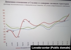Навуковы кіраўнік расейскага Лявада-цэнтру Леў Гудкоў казаў у сваім выступе пра тое, што цяперашняя вайна стала вынікам аднаўленьня ў РФ таталітарных структураў. Ён паказаў, як ў Расеі з пачатку нулявых гадоў паралельна расла як папулярнасьць Сталіна, гэтак і давер да арміі і спэцслужбаў.