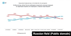Паводле Russian field, увесь час назіраньняў перавага была на баку спыненьня ваенных дзеяньняў, калі такое рашэньне прыме Пуцін.