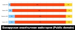 Дадзеныя апытаньняў БАМ пра стаўленьне да ўдзелу беларускага войска ў вайне падобныя да дадзеных Chatham House (Графік 1) — пераважная і практычна нязьменная большасьць беларусаў была і застаецца супраць гэтага.