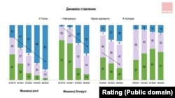 Апытаньні Rating, як і апытаньні КМІС, паказалі істотнае пагаршэньне стаўленьня ўкраінцаў як да дзяржавы Беларусь, гэтак і да беларусаў.