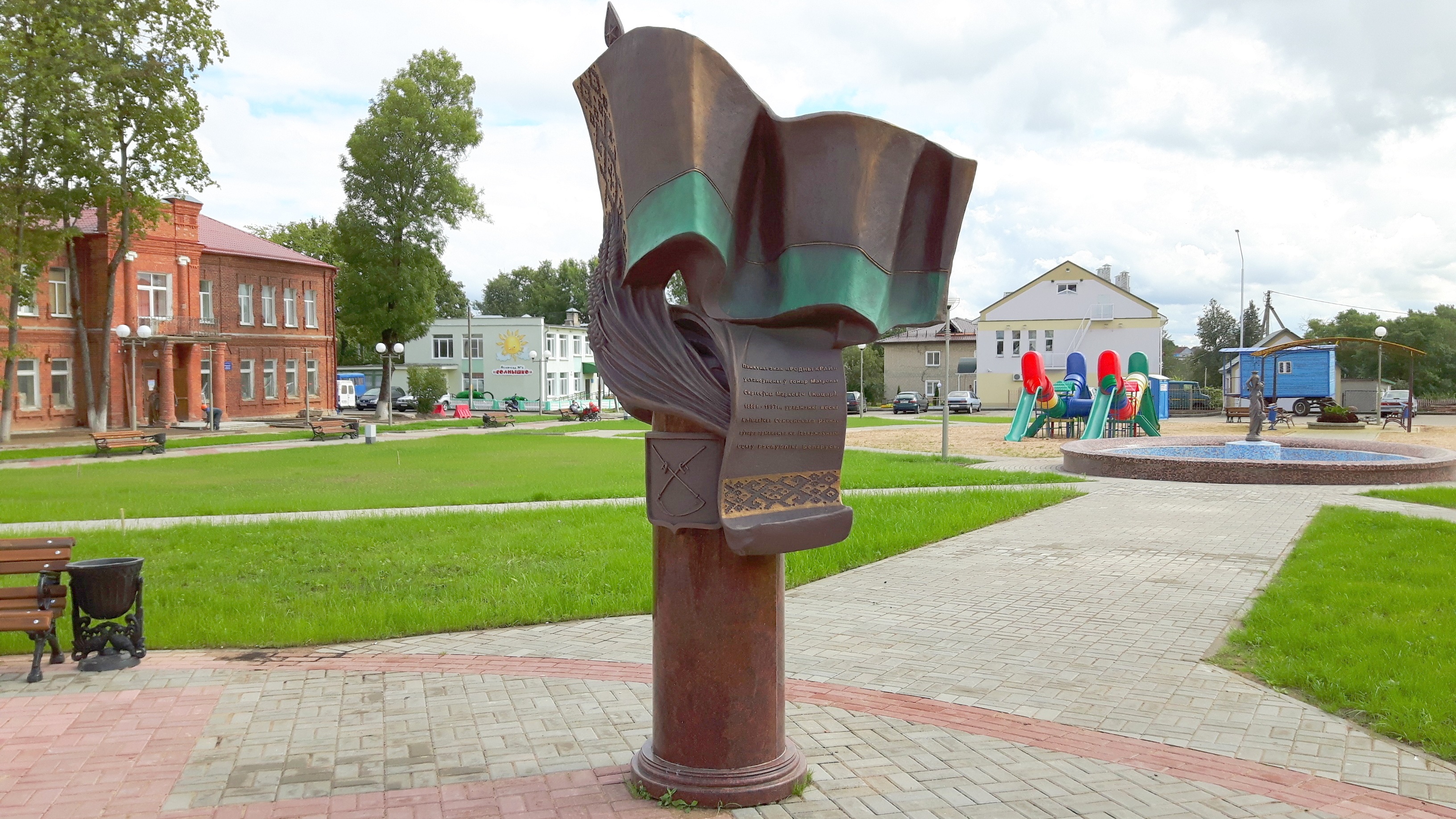 У 2015 годзе ў цэнтры Сянна адкрылі помнік Матруне Маркевіч. У краязнаўчым музэі ёй прысьвечаны асобны стэнд. Калі стала вядома, што яна аўтарка арнамэнту на дзяржаўным сьцягу, Матруна зрабілася адной з гераіняў раёну. Сваякоў цяпер запрашаюць на афіцыйныя імпрэзы, у дачкі Зіны Аляксееўны і ўнучкі Дзіны Пракопаўны часта бяруць інтэрвію.