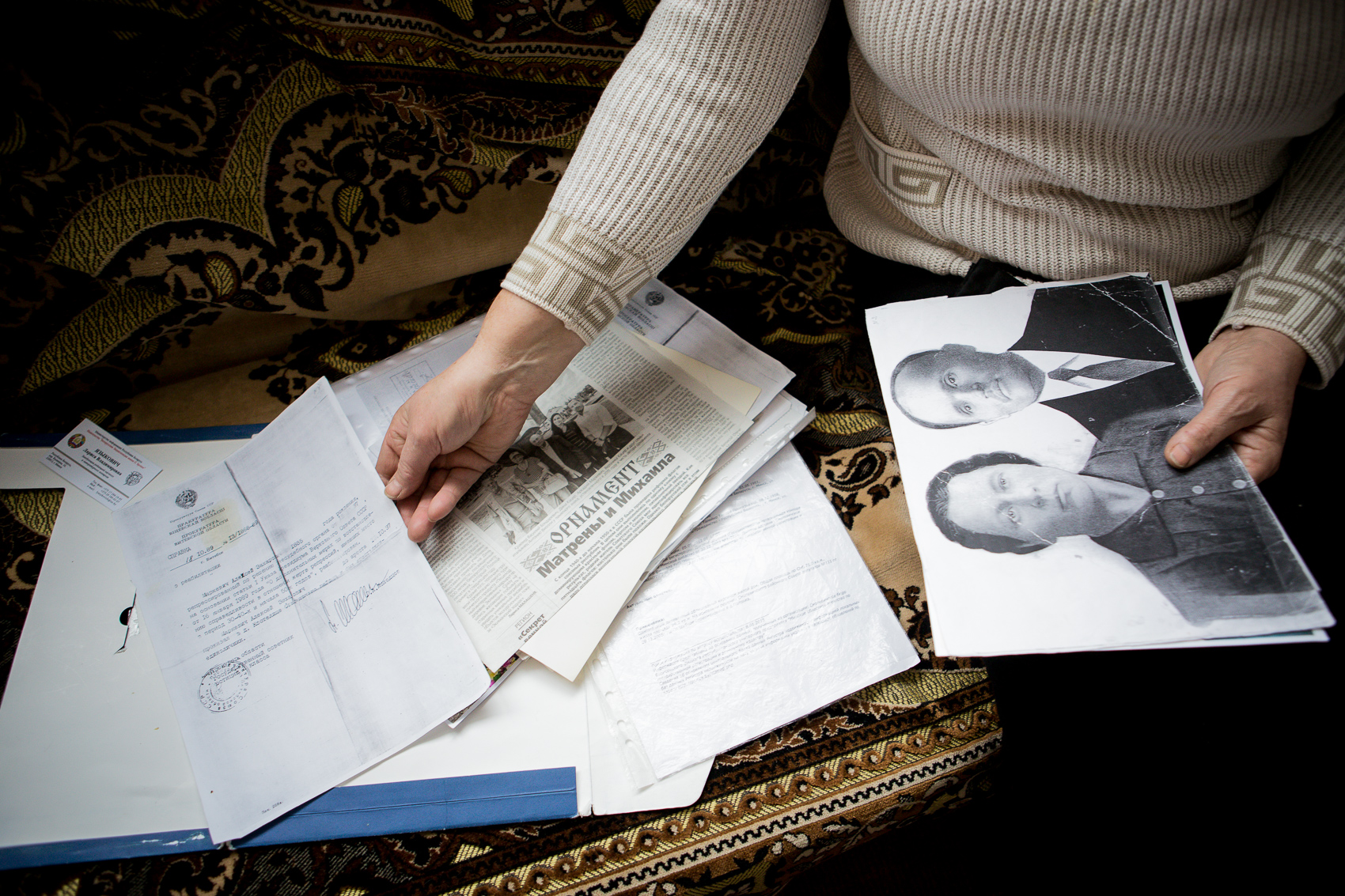 «Мы думалі, што ён далёка сагнаты, — распавядае Зіна Аляксееўна, дачка Аляксея і Матруны. Сёньня яна жыве ў Смалявіцкім раёне каля Менску. — І вось мой бацька за свае рукі, за сваю працу загінуў».