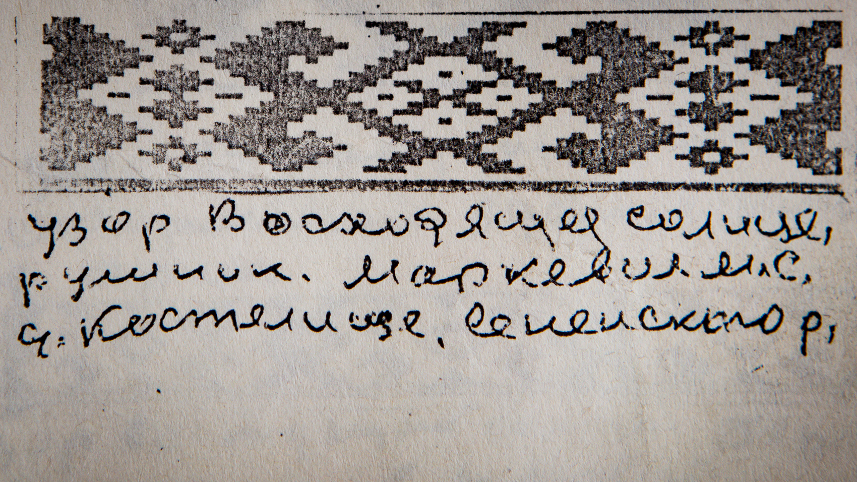 У архівах Міхаіла Кацара былі эскізы вышыўкі і Матруны Маркевіч (у дзявоцтве Кацар). Але пра тое, што Матруна — ягоная сястра, амаль ніхто ня ведаў. Калегам ён не распавядаў пра сваяцтва з Матрунай, а сваякам — пра тое, што скарыстаў сястрын арнамэнт.
