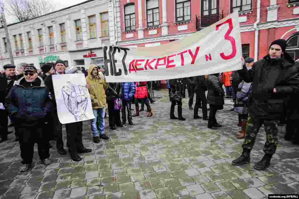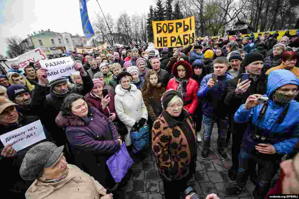 У Бабруйску 12 сакавіка прайшоў мітынг супраць «дэкрэту пра дармаедаў», сабраліся сотні чалавек. Адначасова акцыі адбыліся ў Воршы і Берасьці, пазьней мае пачацца акцыя ў Рагачове.